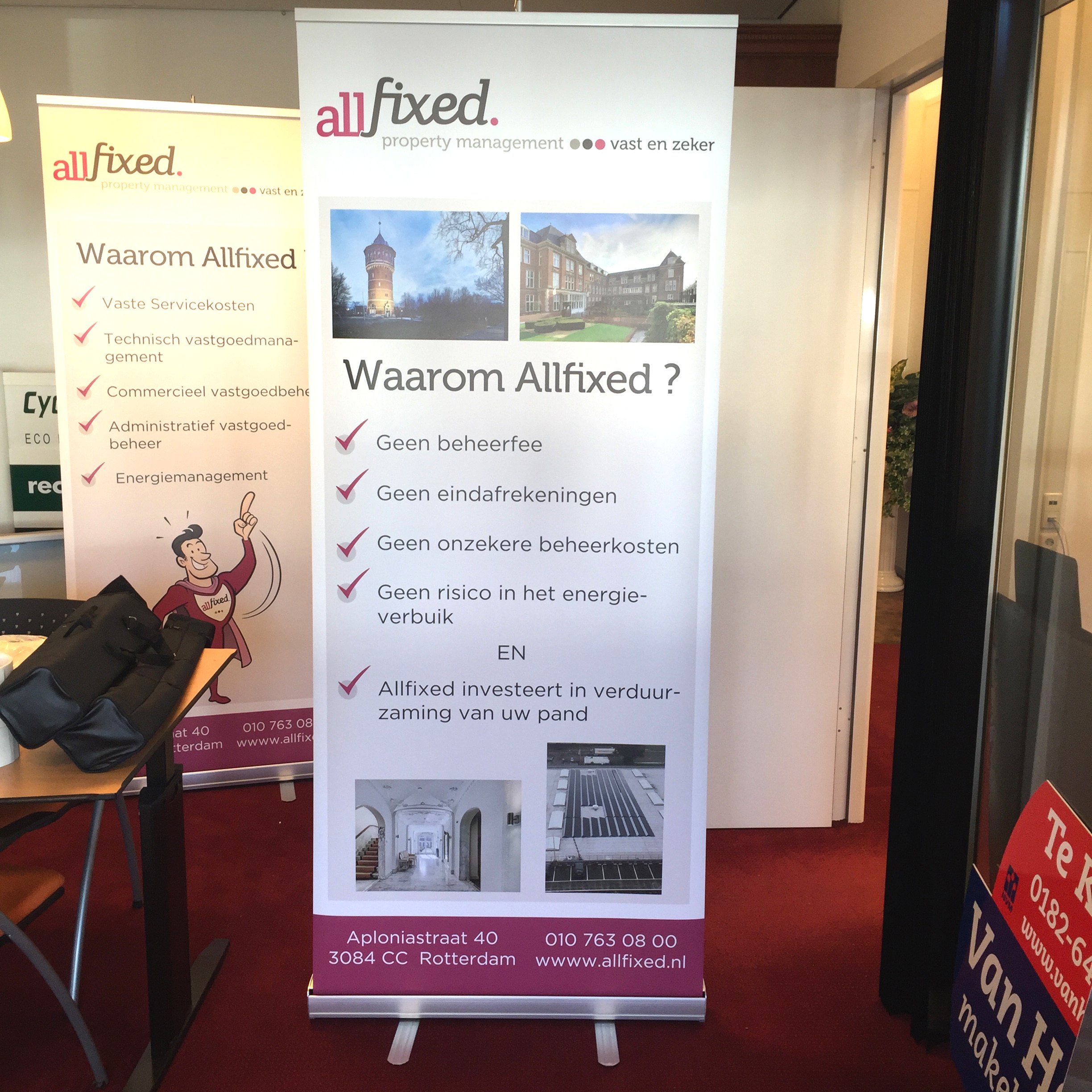 Naast beursborden kunnen wij ook rolbanners voor u produceren. Deze rolbanners zijn van goede kwaliteit. Ze worden voorzien van een stevige aluminium behuizing en goede draagtas. Hierdoor kunt u ze makkelijk naar verschillende beurzen meenemen. Onze rolbanners hebben een standaard formaat van 85 x 200 centimeter.
