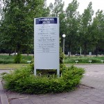 - Staandersystemen met één paneel: dit systeem bestaat uit twee staanders met daartussen 2 stuks houderprofielen. Hiertussen zit een volkernbord van 8 mm met zelfklevende belettering. De hoogte van deze borden kan variëren. Eventueel is dit bord later weer aan te passen in de hoogte. Ook hier bedraagt de brutomaat meestal ca. 130 x 150 cm (B x H).