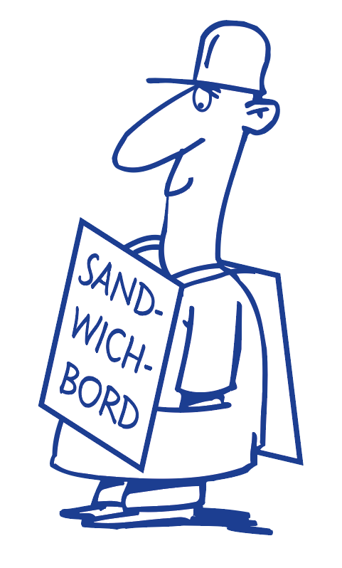 Sandwichborden, ook wel ‘draagborden’ genoemd, zijn reclameborden die gedragen worden door één persoon. Het unieke aan deze vorm van reclame is dat de drager tussen twee panelen loopt. Hierdoor wordt jouw boodschap continu getoond aan voorbijgangers. Dit noemen we ‘bewegende reclame’: je reclame verplaatst zich mee door het publiek en valt zo op een natuurlijke manier op.