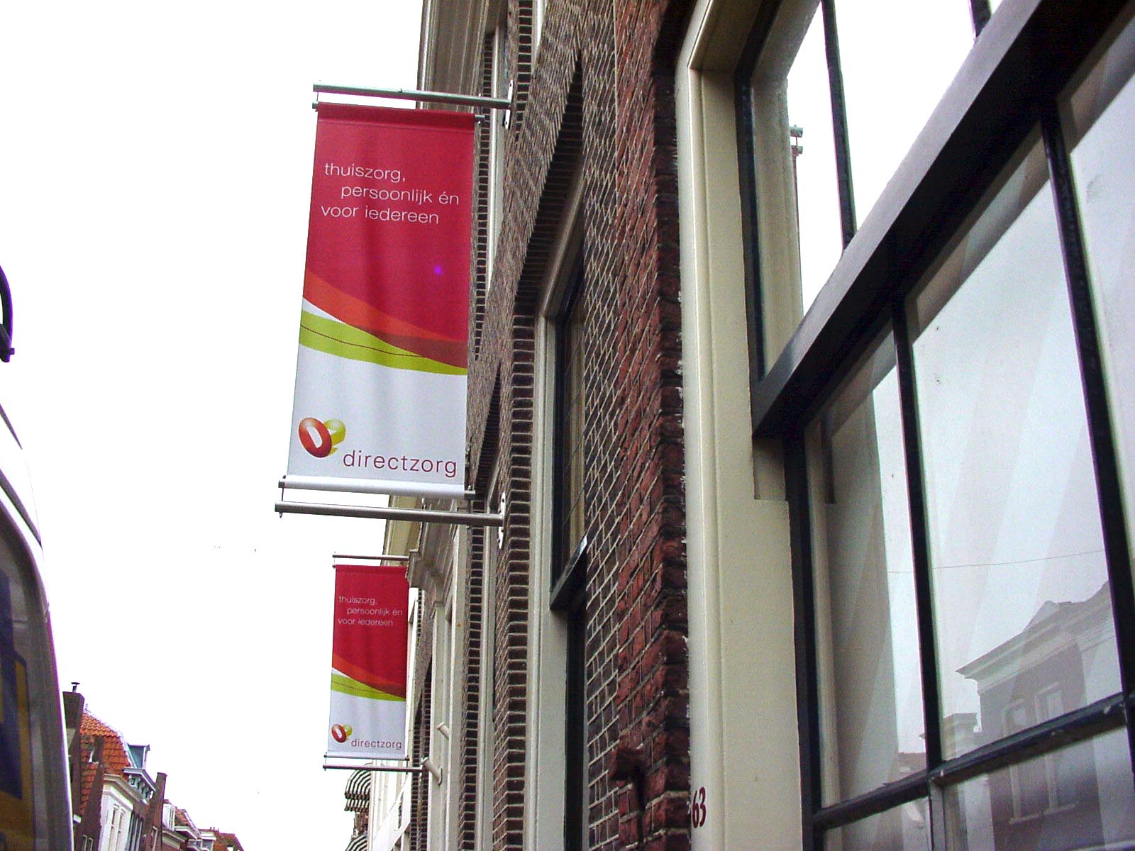 - Dubbelzijdige spandoeken gefixeerd aan RVS-bannerhouders